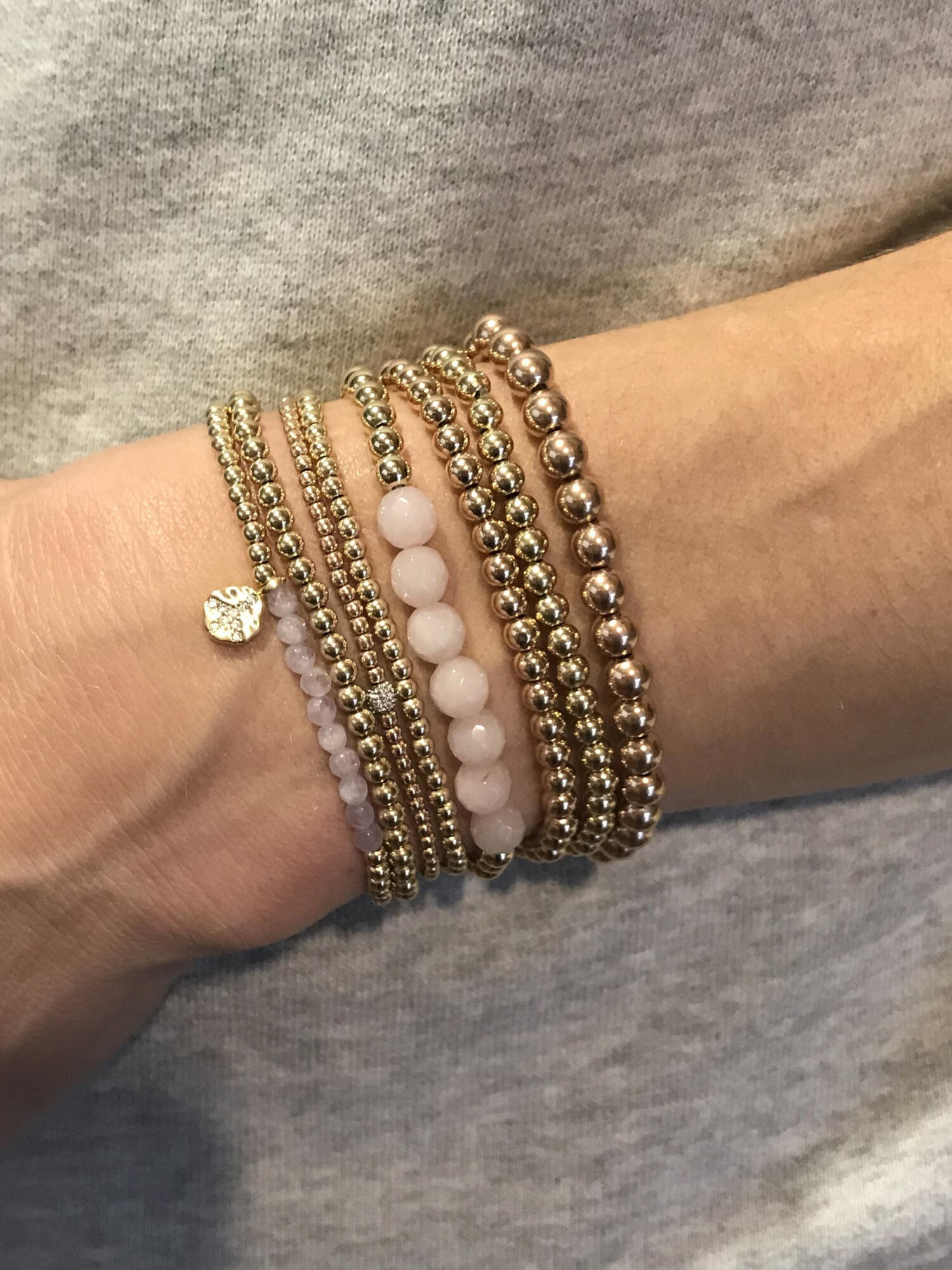 Personalize your 4.0mm bracelet with a name or initials. Your choice of yellow gold-filled beads, rose gold-filled beads or sterling silver beads with black, white or rainbow letters. Hearts also available upon request. Available in multiple wrist sizes for both adults and kids.